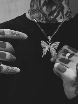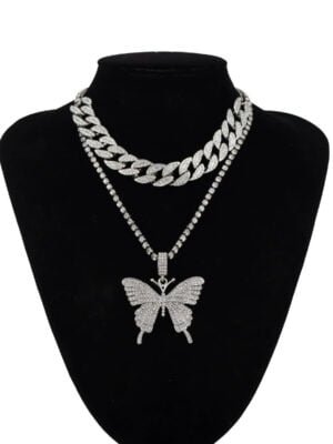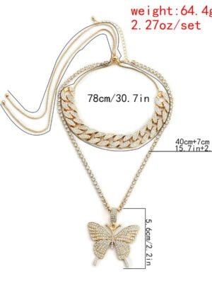 Be the first to review “Hip Hop Personality Full Diamond Butterfly Necklace Men’s and Women’s Pendant Collarbone Chain Hiphop Cuban Chain”